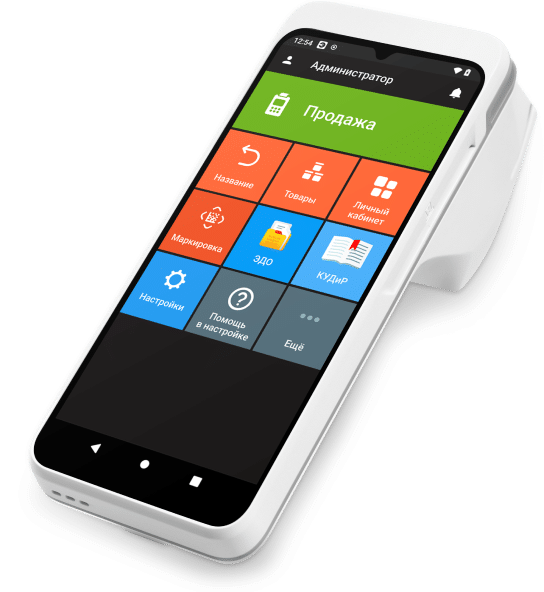 - Всеми операциями кассы руководит ОС Android 10.