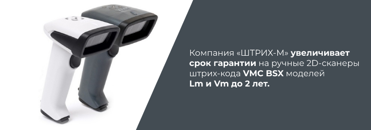 В рамках программы по улучшению условий обслуживания пользователей, компания «ШТРИХ-М» увеличивает срок гарантии на ручные 2D-сканеры штрих-кода VMC BSX моделей Lm и Vm до 2 лет.